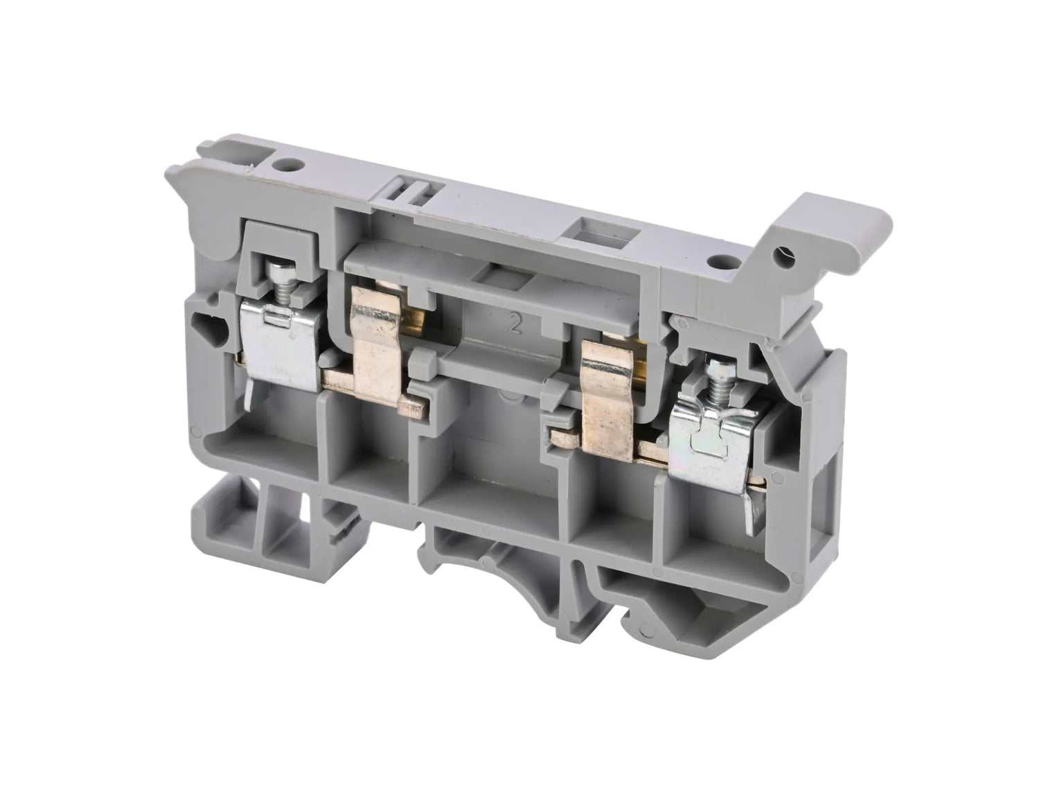 DIN-RAIL KLEMMENBLOK MET ZEKERING, SCHROEVEN, DOORSNEDE 4MM2 GRIJS